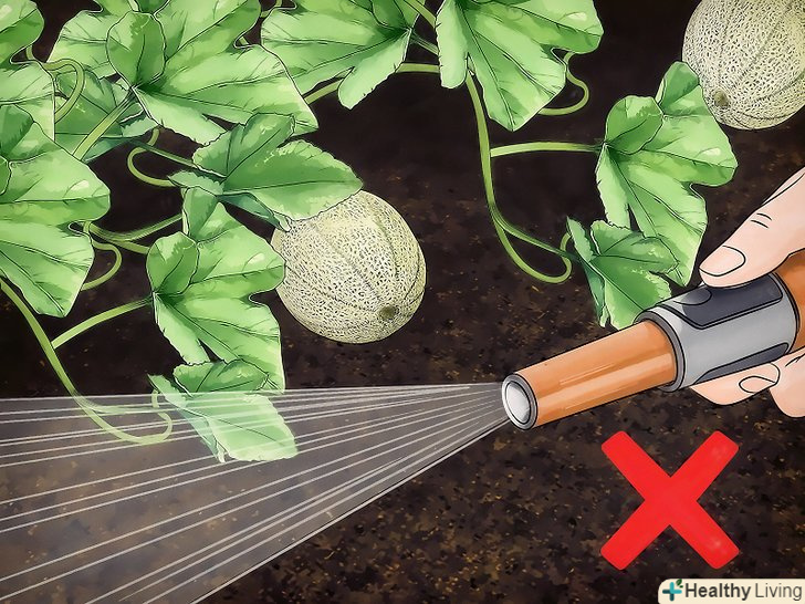 - Ви можете поливати канталупи за допомогою спеціальних пристосувань, наприклад, крапельної стрічки. Але якщо у вас невеликий город, то рослини можна поливати вручну. Поливайте навколо стебел, намагаючись, щоб вода не потрапила на них.