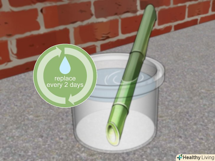 Раз на два дні міняйте воду. стояча вода швидко втрачає кисень, особливо при пророщуванні бамбука. Регулярно міняйте воду, щоб держак продовжував отримувати поживні речовини, необхідні йому для подальшого зростання. [14]