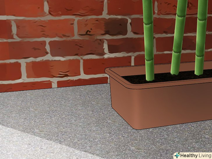Тримайте горщики в тіні протягом 4-6 тижнів. на них не повинен потрапляти пряме сонячне світло. Найкраще розмістити горщики біля тінистої зовнішньої стіни або в тіні великого дерева. Пройде 4-6 тижнів, перш ніж бамбук пустить пагони і проросте з-під землі. [19]- Вирощений з кореневища бамбук можна пересадити назад у відкритий грунт, коли нічна температура не буде опускатися нижче 13°C.