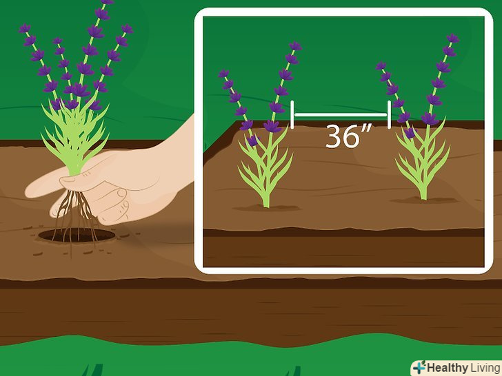 Підготуйте грунт. підготуйте грунт для посадки лаванди і оптимізуйте умови зростання шляхом укладання в ямку двох жмень круглого каменю діаметром 2-3 см., разом з півсклянки суміші з вапна, добре перепрілого гною і вапняного борошна. Ретельно перемішайте. Накрийте цю суміш тонким шаром грунту.- Камінь допоможе з дренажем, вапно буде подщелачивать грунт, в той час як кісткове борошно і добриво допоможуть лаванді добре рости.