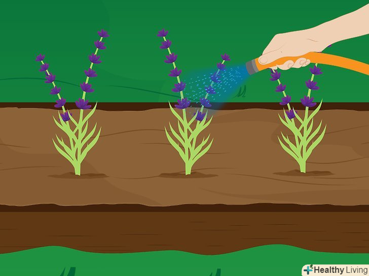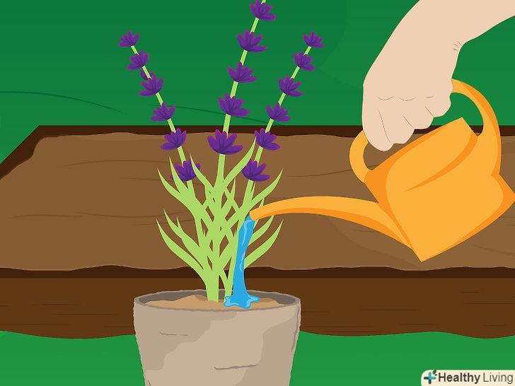Поливайте мало. як згадувалося раніше, вогкість – ворог лаванди, і якщо її коріння стають надмірно вологими, то це вб'є рослину швидше будь-якої посухи або низьких температур. Насправді, основною причиною зупинки росту рослин є надмірний полив нових рослин навесні.- Для досягнення належного рівня поливу переконайтеся, що грунт стає абсолютно сухою між кожним поливом. Однак сама рослина не повинна висохнути.