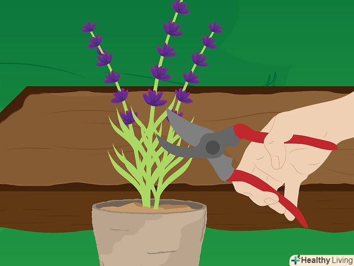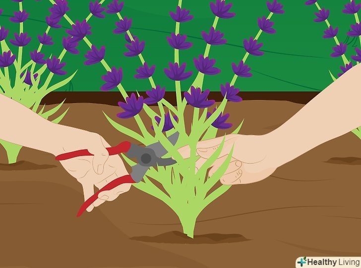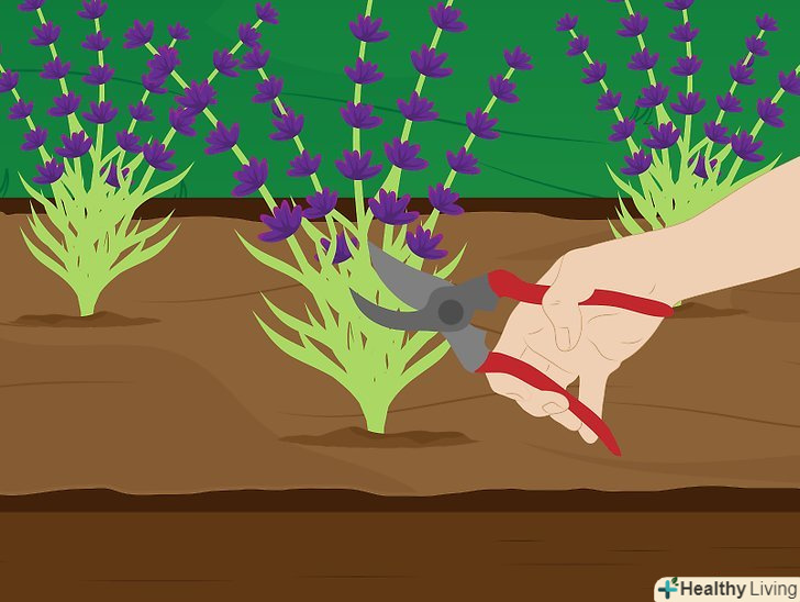 Обрізайте лаванду. ви повинні обрізати лаванду до початку нового зростання, приблизно раз на рік, переважно навесні. Треба обрізати близько 1/3 всієї рослини, використовуючи секатор або садові ножиці, щоб надати акуратну, округлу форму.- Обрізка стимулюватиме нове зростання і зупинить рослину від розлогості.