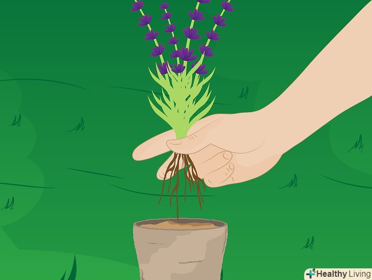 Підготуйте коріння. вийміть лаванду з горщика і обережно струсіть, щоб видалити зайву грунт з коренів. Лаванду слід висадити в новий будинок з голими корінням, щоб переконатися, що вона швидко і легко адаптується до нового середовища зростання.