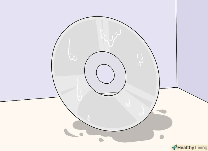 Просушіть диск. найкраще розташувати диск вертикально або оперти стороною з написами про м'який предмет (на зразок рулону паперових рушників), щоб він висох без використання тканини, але, якщо ви поспішаєте, можна просушити поверхню диска серветкою з мікрофібри (рухайтеся тільки по прямій лінії). [1]