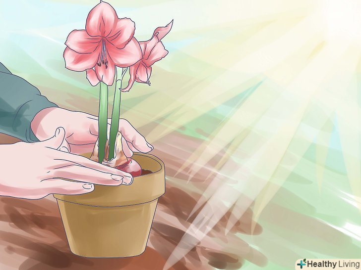 Поставте горщик під прямими сонячними променями протягом перших кількох тижнів догляду. Амариліс Найкраще росте при температурі 20 -25 °С.