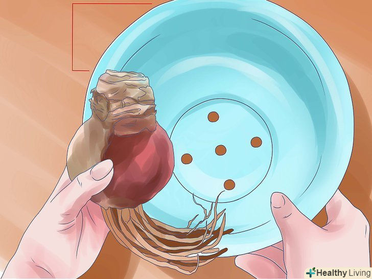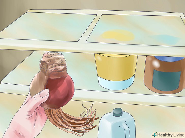Помийте цибулину під проточною водою. висушіть її і зберігайте в сухому прохолодному місці, так само, як ви робили раніше до посадки цибулини. Зберігайте її в прохолодному і сухому місці від 6 до 8 тижнів, перш ніж посадити знову.