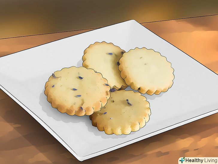 Додайте лаванду в випічку. щоб надати випічці легкий освіжаючий аромат, додайте в неї 1-2 чайні ложки сушених квітів лаванди. Використовуйте лише такі сушені квіти і бутони лаванди, які спеціально призначені для їжі. У продажу є також лаванда, яка розрахована тільки на використання в якості ароматичного засобу, і вона може піддаватися обробці пестицидами. Можна зробити наступне:- Спечіть печиво з лаванди і лимона;