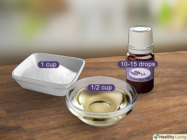 Приготуйте домашній скраб з лаванди і кокоса. змішайте 1 склянку (250 грамів) цукрового піску, ½ склянки (120 мілілітрів) розтопленого кокосового масла і 10-15 крапель лавандового масла. [19]- Для прикраси можна додати в скраб 2 столові ложки сушених бутонів лаванди.