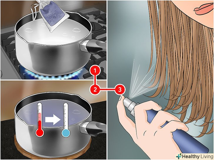 Використовуйте лаванду в якості кондиціонера для волосся, який можна не змивати. приготуйте склянку міцного відвару лаванди, почекайте, поки він охолоне, і перелийте в пляшку з розпилювачем. Кілька разів на тиждень обприскуйте охолодженим відваром слабкі ламкі волосся. Його можна наносити як на мокрі, так і сухе волосся. [20]