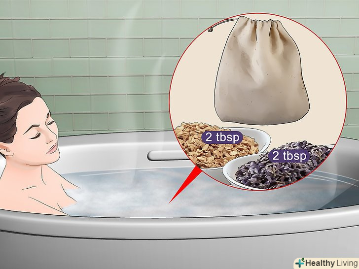 Приймайте ванни з лавандою і вівсом. розслабляйтеся і відпочивайте в заспокійливих ваннах. Щоб приготувати ванну, насипте в мішечок з мусліну дві столові ложки сушеної лаванди і стільки ж вівсяних пластівців. Зав'яжіть мішечок і опустіть його в ванну з теплою водою. [21]