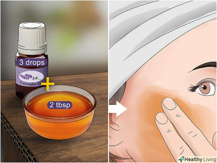 Робіть маски для обличчя з лаванди і меду. такі маски корисні для шкіри і легкі в приготуванні. Змішайте в невеликій чашці одну столову ложку (15 мілілітрів) сирого меду і три краплі лавандового масла. Як слід перемішайте інгредієнти і нанесіть суміш на чисту вологу шкіру обличчя і шиї. Залиште маску на 5-15 хвилин, потім змийте її теплою водою. [22]