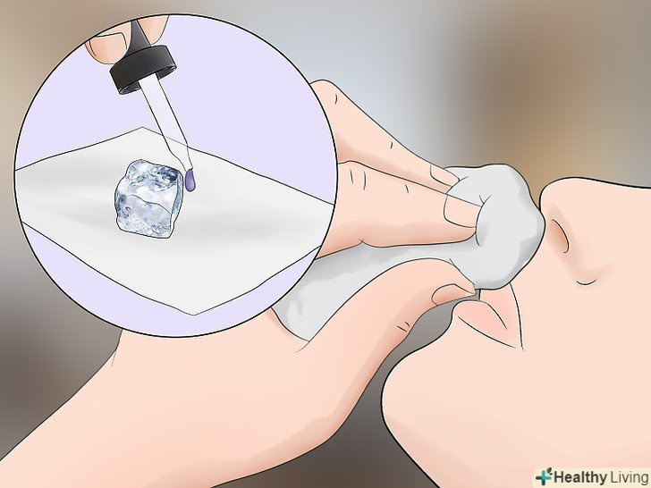 Зупиніть кровотечу з носа. нанесіть краплю лавандового масла на клаптик тканини і загорніть в нього невеликий шматочок льоду або товчений лід. Покладіть покритий тканиною лід між верхньою губою і яснами. Тримайте його там до тих пір, поки не перестане йти кров. [3]- Будьте обережні, щоб не обморозити губу або ясна.
