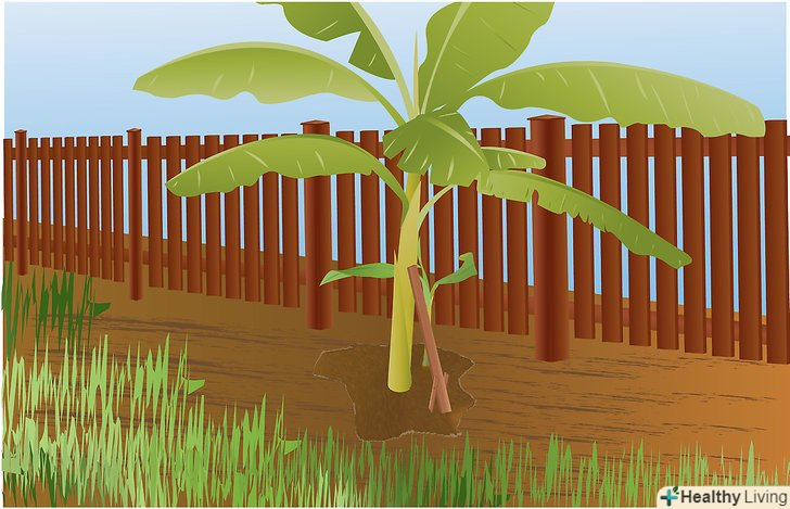 Виберіть посадочне місце. Грядка, на якій ви вирішили посадити бананові рослини, повинна бути досить великою, щоб вмістився їх підсумковий розмір. Бананові рослини часто помилково приймають за дерева, тому що товстий, міцний псевдоствол дуже сильно схожий на стовбур, і рослина може бути досить великим (7.6 м.у висоту, а листя до 2.7 м. в довжину). На грядці має бути достатньо сонячного світла для листя, і, що більш важливо, підтримуйте грунт, навколишнє коріння рослини, теплою (більше 20 °С), інакше рослина різко сповільнить своє зростання.- Зробіть сонячну діаграму двору, щоб визначити, які ділянки отримують максимально сонячного світла протягом найдовшого періоду дня.