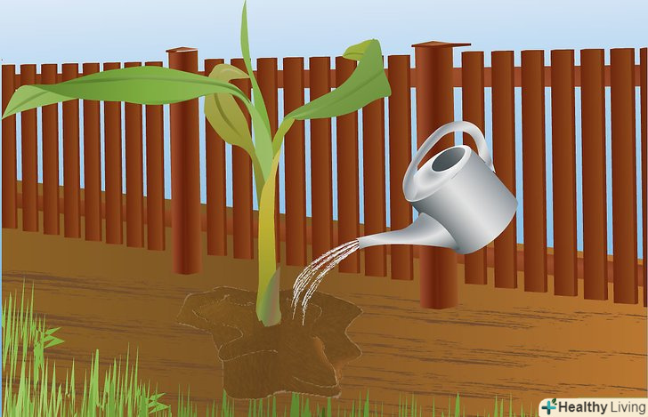 Помістіть рослину в яму, яку раніше вирили. рослина повинна бути в положенні стоячи. Засипте його грунтом, добре утрамбовуючи, але не перестарайтеся.
