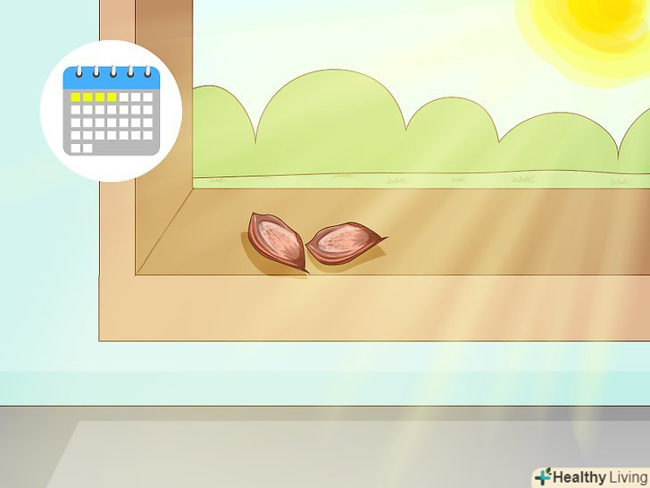 Сушіть кісточки на освітлюваному сонцем підвіконні протягом 3-4 днів. суху кісточку набагато легше розколоти, ніж вологу. Покладіть кісточки на паперовий рушник там, де вони нікому не будуть заважати. [3]- Чим більше буде сонячного світла, тим швидше висохнуть кісточки.