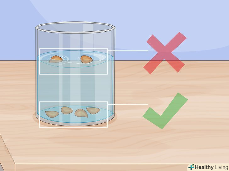 Перевірте життєздатність насіння — для цього покладіть їх у склянку з водою. налийте в склянку холодну воду з-під крана. Якщо насіння зануряться на дно, вони життєздатні. Якщо ж насіння залишаться плавати на поверхні, вони не проростуть, і їх слід викинути. [5]- Тонуть у воді насіння містять необхідні поживні речовини, які допоможуть їм прорости .