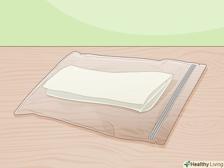 Покладіть вологий паперовий рушник у щільно закривається пластиковий пакет. обережно перекладіть рушник з насінням в пластиковий пакет. Видавіть з пакета якомога більше зайвого повітря, а потім закрийте його. [7]- По можливості покладіть пакет плазом. Таким чином ви зменшите ймовірність того, що насіння вислизнуть з паперового рушника.