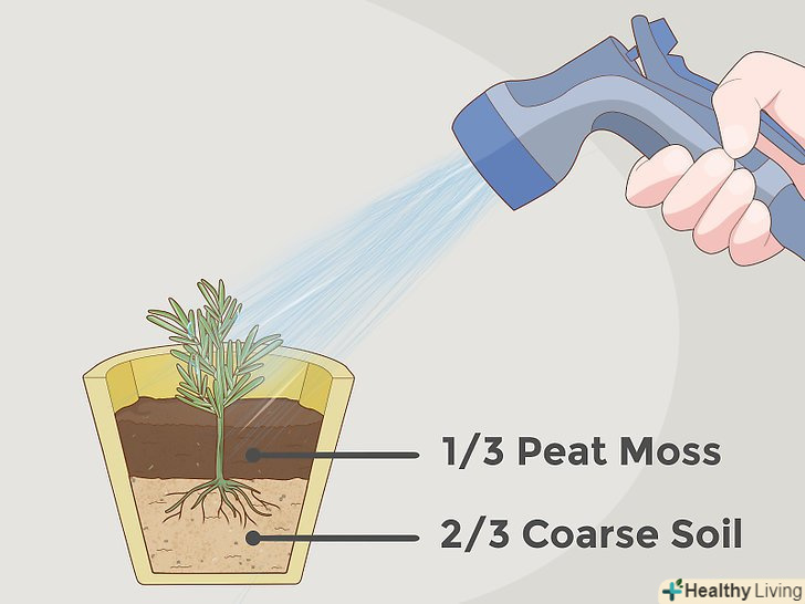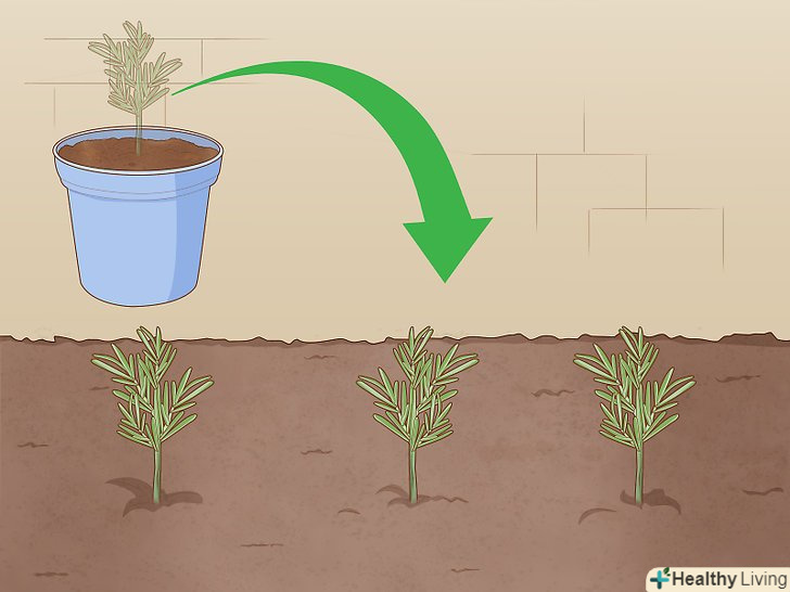 Висадіть розсаду. як тільки сформувалися коріння, ви можете пересаджувати розмарин в горщики або у відкритий грунт. Розмарин досить невибагливий і може пристосуватися до різних кліматичних умов. Він прекрасно переносить сніг, спеку, приморський клімат, вапняк, будь-які типи грунтів. Однак найкраще розмарин росте в теплому або жаркому сухуватому кліматі. Для посадки виберіть добре освітлене і досить сухе місце.- Вирішіть, як ви хочете вирощувати розмарин: в горщиках або у відкритому грунті в саду. Можна навіть виростити з розмарину живопліт з чудовим запахом. У більш холодному кліматі краще вирощувати розмарин в контейнерах, щоб при необхідності занести його в приміщення.