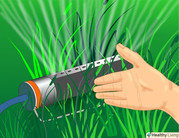 Траву не потрібно поливати під час довгих сухих періодів. листя може пожовтіти, але «серце» рослини, яке знаходиться під землею, виживе, і буде перебувати в сплячці протягом декількох місяців. Але якщо ви хочете, щоб ваш газон залишався зеленим все літо, поливайте рясно, але не часто. Краще включити систему поливу на один чан, один або два рази на тиждень, ніж по 10 хвилин кожен день. Думайте про це так: це робиться для того, щоб сприяти глибокому росту коренів. Якщо під корінням земля буде сухою, вони не будуть рости вниз. А коли верхні шари грунту висохнуть, волога, що залишилася внизу, підніметься наверх.