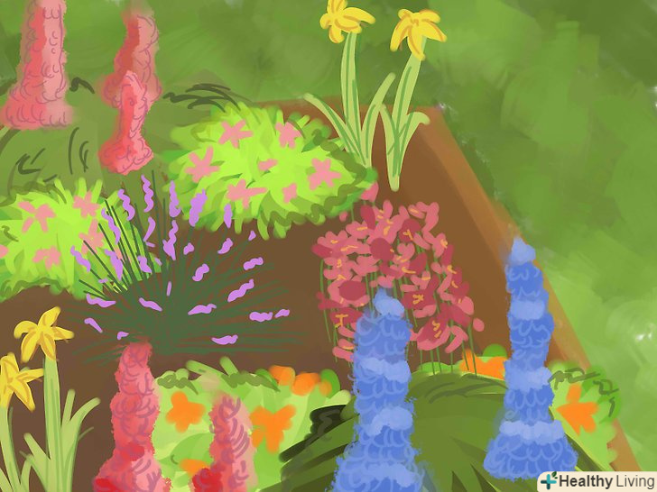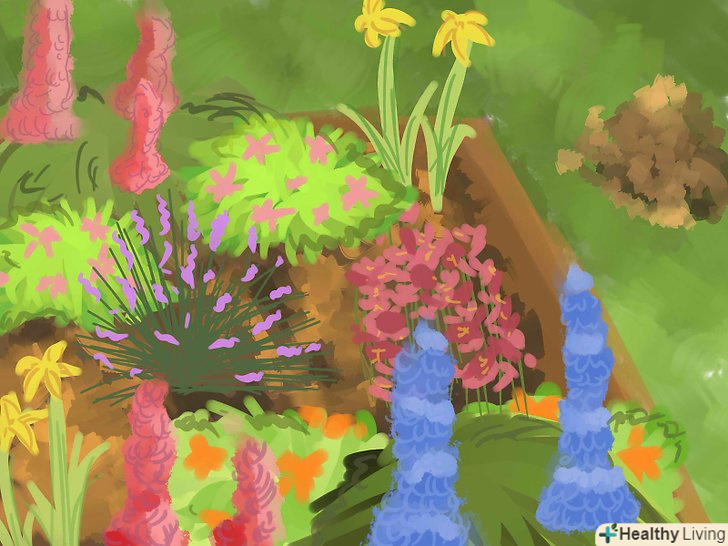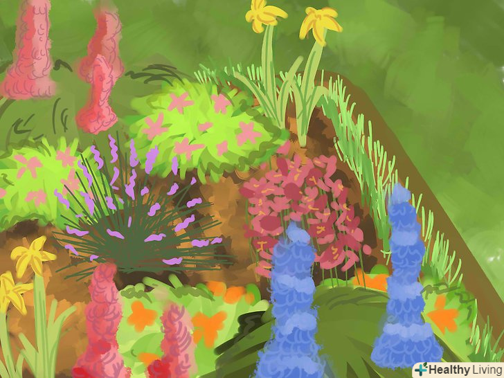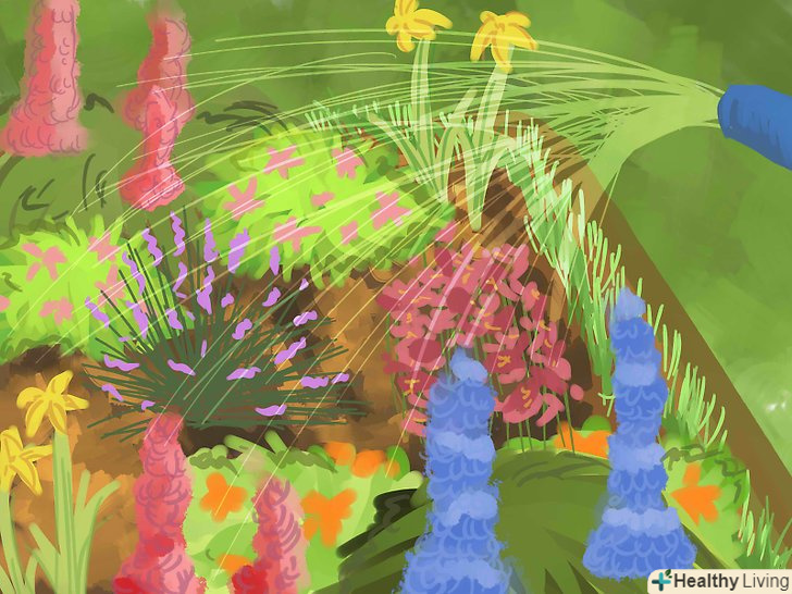 Додайте шар мульчі. 5-сантиметровий шар мульчі позбавить від бур'янів, а також допоможе зійти рослинам для гарного росту. Будьте обережні і не затопите верхівки молодих рослин. Важка мульча, як соснова солома, тріски або тирса, більш прийнятна, ніж легка, тому що остання може витекти з потоком води або розкидатися в разі сильного потоку. Зазвичай на другому році зміцнюють ще одним шаром мульчі, але пізніше це не потрібно.