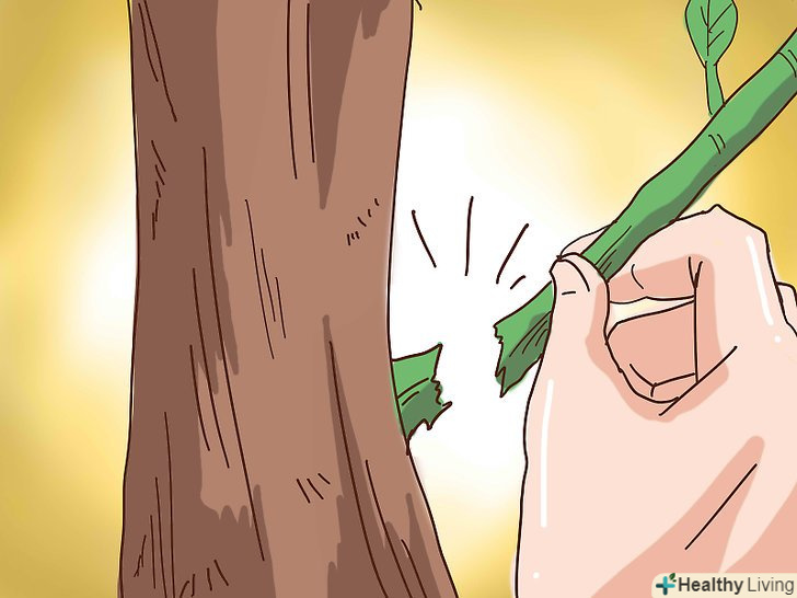 Обрізайте відростки в міру появи. лимонні дерева щеплені від плодоносної гілки нормального розміру на маленькому підщепі (для карликових дерев) або на основному стовбурі. Відростки-пагони від підщепи, які зменшують урожай плодів і негативно позначаються на здоров'ї лимонного дерева. Вони часто перевершують висоту основного рослини за кілька місяців, якщо не зупинити «висмоктування» ними поживних речовин з головної частини дерева. [3]- Зелені відростки, як і новостворені пагони, можна акуратно відламати біля основи.