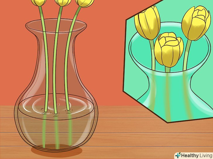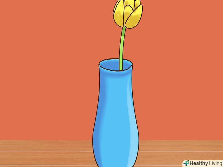 Поставте тюльпан. поставте квітка в посудину і підправте як треба.- Тюльпани завжди трохи схиляються, але цей нахил повинен бути мінімальним, якщо квітка стоїть у високій і вузькій вазі.