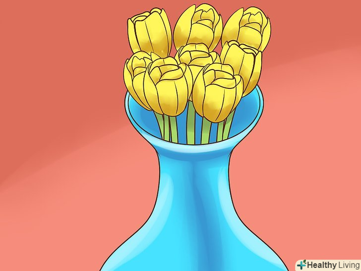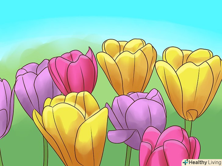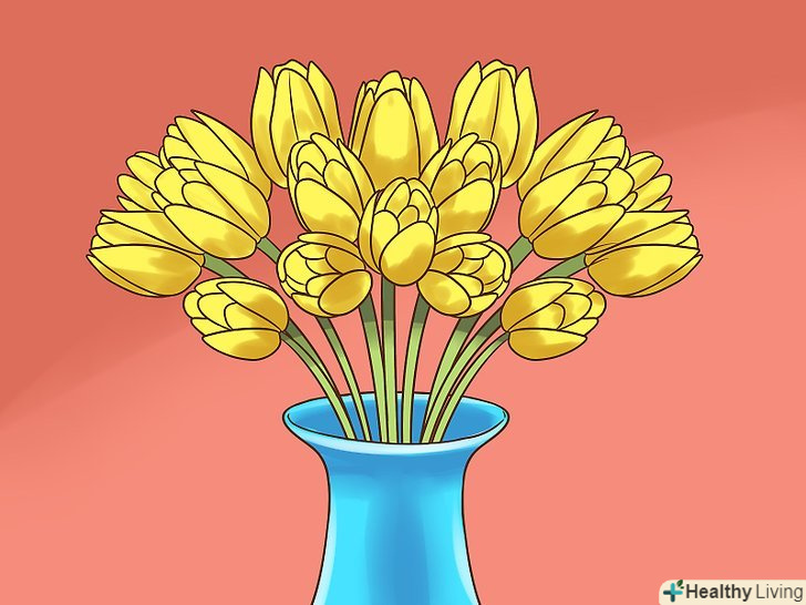 Виберіть колір. Тюльпани бувають найрізноманітніших відтінків, і ваш букет може включати в себе один колір або кілька.- Щоб прикрасити квітами інтер'єр, люди зазвичай вибирають їх, виходячи з колірної гами кімнати. Ви можете взяти тюльпани того ж відтінку, що і інші кольорові акценти в приміщенні, або додати контраст. Наприклад, червоні тюльпани можуть красиво виглядати в кімнаті з червоними подушками на дивані і стінами нейтрального відтінку. З іншого боку, яскраво-помаранчеві тюльпани створять ефектний контрастний сплеск додаткового кольору в кімнаті, декорованої виключно у відтінках блакитного.