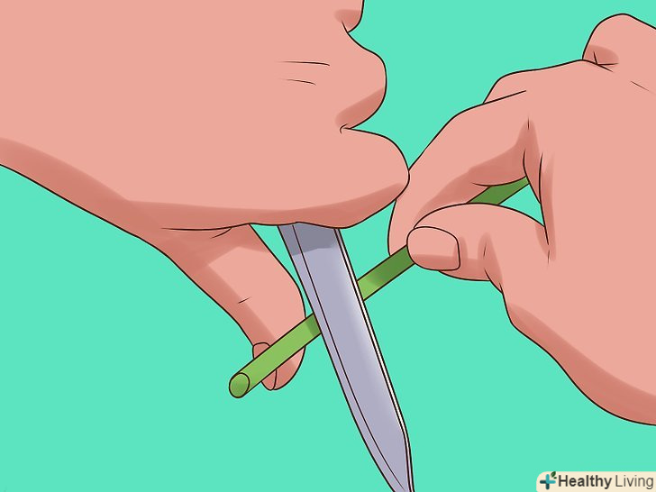 Подрежьте стебла під проточною водою. [2] чистим гострим ножем відріжте Нижні 1,3–2,5 см кожного стебла. Зріз слід робити по діагоналі, щоб стебла могли поглинути більше води.- Коли стебла висихають, їх капіляри поступово закриваються, обмежуючи здатність квітів отримувати воду. Свіжий зріз знову розкриє капіляри, і тюльпанам буде легше «пити».