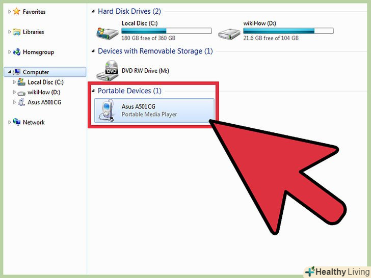 Підключіть ваш смартфон або MP3 плеєр до комп'ютера і знайдіть пісні, у яких відсутня обкладинка альбому. зазвичай при підключенні пристрою до комп'ютера з'являється спливаюче вікно, в якому ви побачите список можливих дій. Якщо це сталося, то виберіть пункт»Відкрити папку для перегляду файлів". Якщо цього не сталося, то відкрийте «Мій комп'ютер» і знайдіть ваш пристрій в списку «пристрої зі знімними носіями».