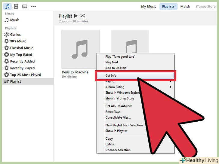 Починайте додавати обкладинки. Тепер ви можете додавати обкладинки альбомів прямо в цьому плейлисті в iTunes. Потрібно діяти послідовно - по одній пісні за раз або по одному альбому.- Виберіть пісню, з якою хочете працювати, і натисніть на неї правою кнопкою миші.