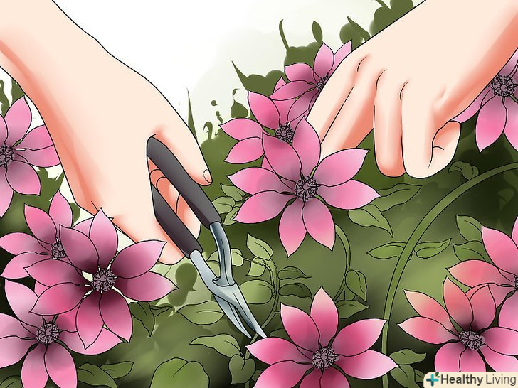 Підрізайте рослину належним чином. є три типи клематисів, і кожен з них вимагає особливого підходу.- У клематиса, який розцітає рано, потрібно видаляти всі мертві і слабкі стебла відразу ж, як тільки рослина зацвіте.