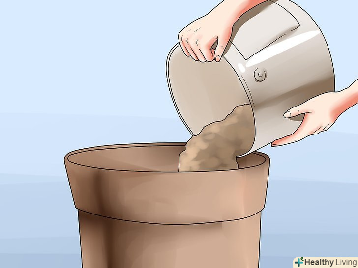 Наповніть горщик грунтом. найкраще використовувати глинистий грунт, тому що вона добре затримує вологу. Крім того, в грунті повинно міститися багато поживних елементів, тому купите спеціальну грунт в магазині.