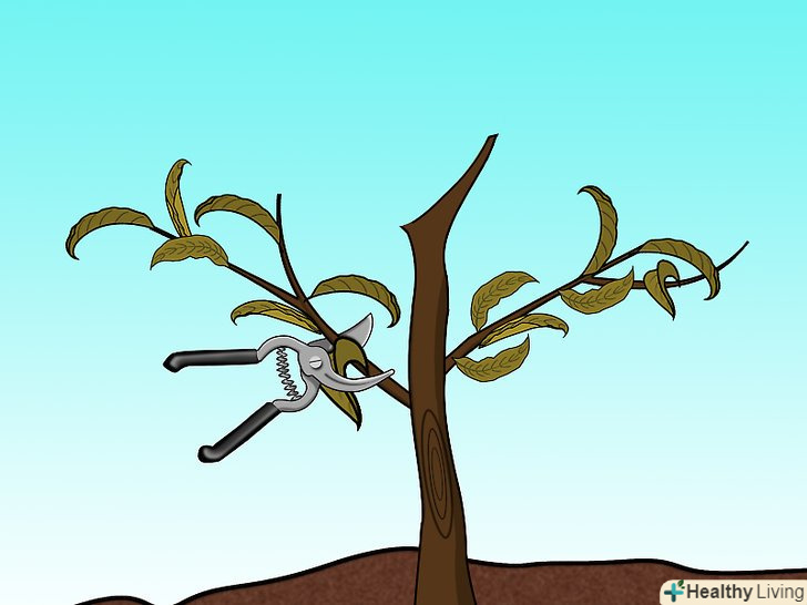 - Обріжте гілки, які перетинаються з іншими і закривають їм сонячне світло. Краща форма для персикового дерева-відкрита ваза: так дерево буде отримувати максимум сонця. [7]