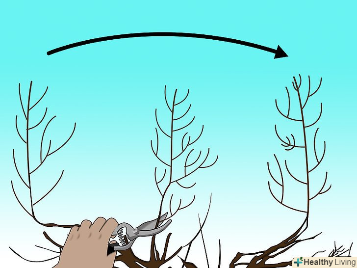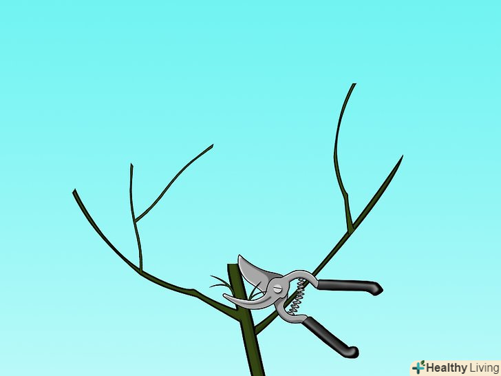 - В ідеалі всі гілки повинні рости під кутом 45 градусів. Якщо немає жодної гілки, яка росла б під кутом, близьким до цього, обріжте всі гілки до однієї нирки і дайте їм вирости заново. [5]
