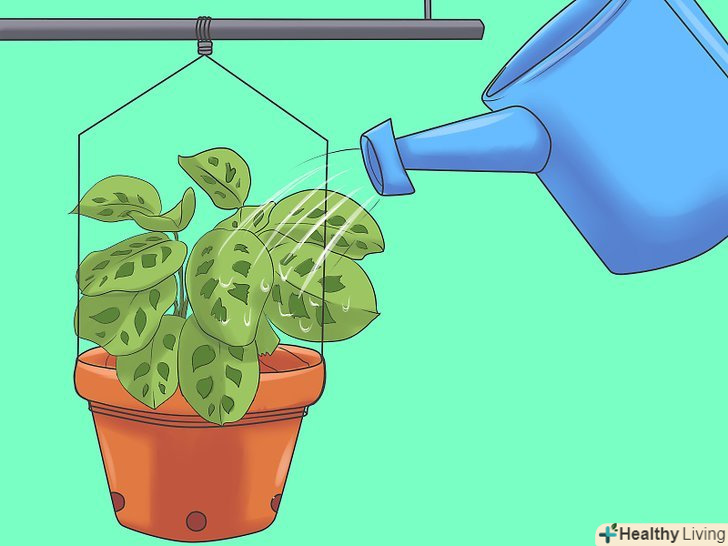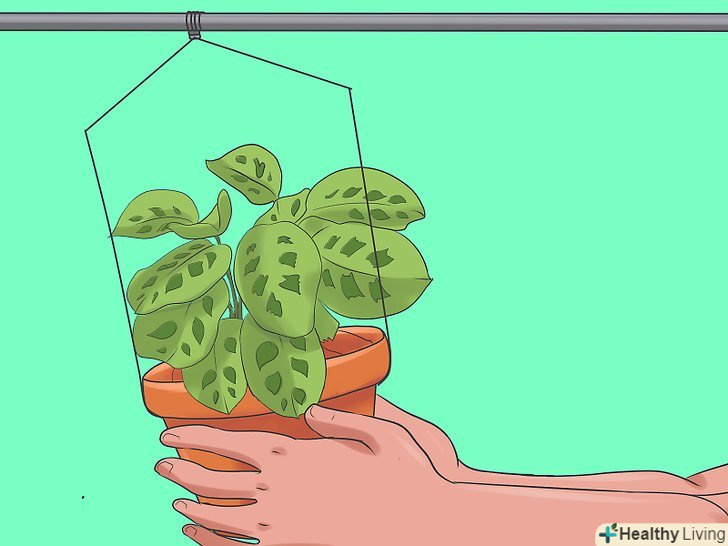 Підвісьте рослину до стелі кімнати, яка виходить на захід або південь. знайдіть кут, де воно буде захищене від прямого сонячного впливу, і підвісьте горщик так, щоб рослина отримувало необхідну порцію розсіяного світла, що забезпечить хороший активне зростання.- Правильне вплив світла призведе до того, що у маранти будуть розкішні зелені стебла і яскраві листя.