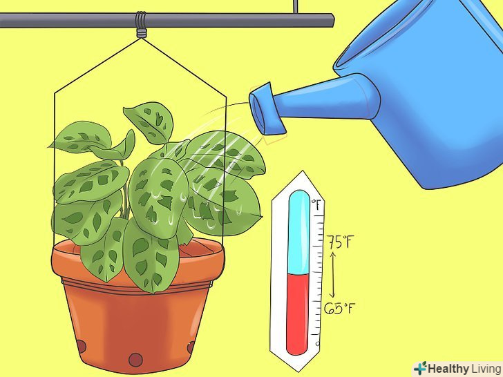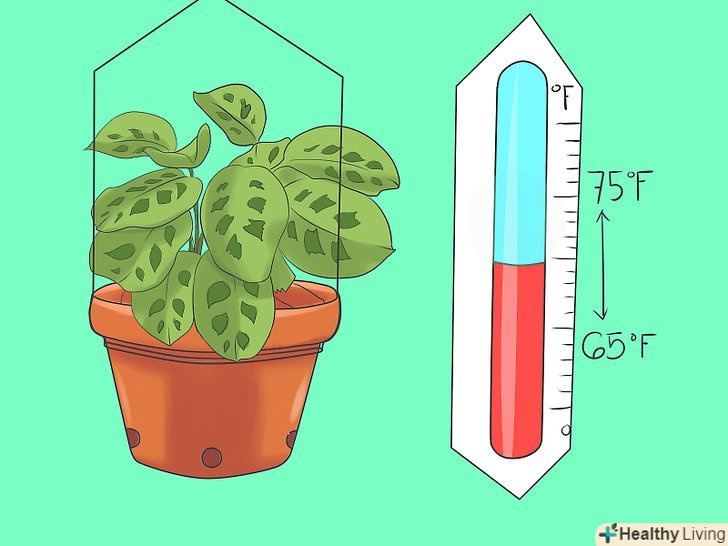 Підтримуйте температурний режим в кімнаті близько 19-24 °C і відповідну вологість. Маранта, як і будь-яке інше тропічна рослина, не виносить переохолодження. При низькій температурі і сухому повітрі її листя починає коричневеть і сохнути. При температурі вище 24 °C зростання листя сповільнюється, а стебла стають довгими і тонкими.- Підвищіть Вологість в кімнаті за допомогою зволожувача повітря або встановіть під рослиною піддон наповнений галькою і водою.