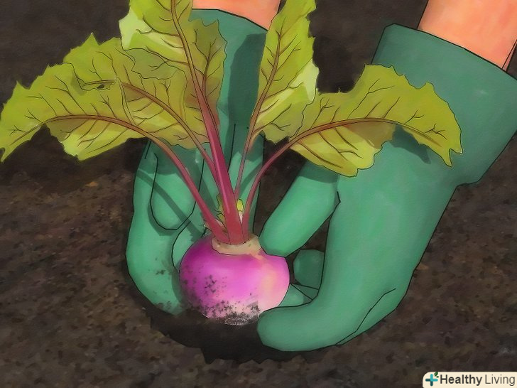 Витягніть коріння ріпи, як тільки вони дозріють. ви повинні бути в змозі зібрати зрілу, стиглу Ріпу через 5-10 тижнів. "Раннім" сортам потрібно тільки п'ять тижнів, в той час як сортам «maincrop» потрібно шість – десять тижнів.- Ви можете зібрати невелику ріпу просто вручну, потягнувши її. Для прибирання великих коренів ріпи, використовуйте копальні вила, щоб послабити грунт навколо кореня до його витягування.