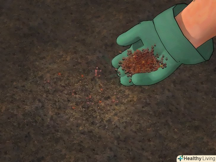 Розсійте насіння. поширюйте насіння на підготовлену грунт якомога більш рівномірно. Покрийте насіння обережно 6 мм. шаром грунту для весняної ріпи або 1.25 см.шаром грунту для осінньої ріпи.- Крім того, ви можете посіяти насіння рядами, розташованими на відстані 30-45 см.один від одного.