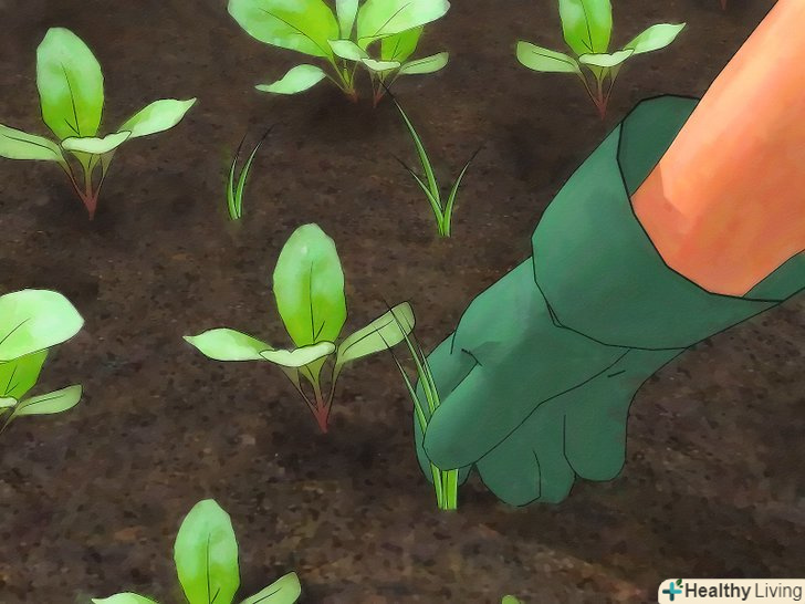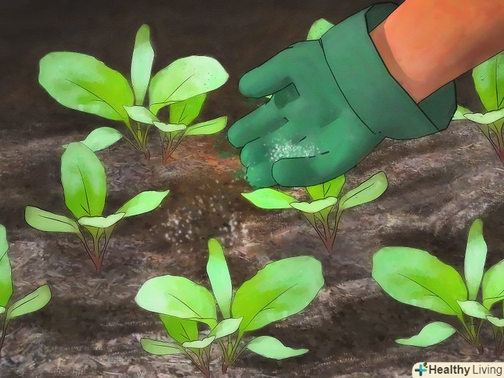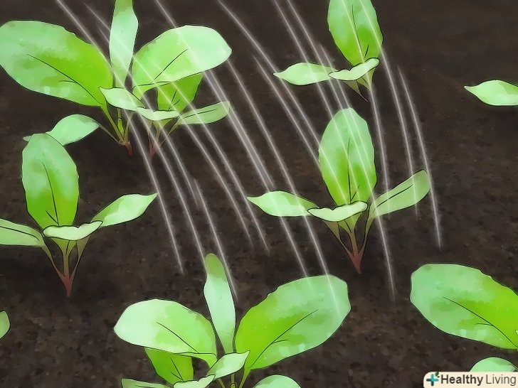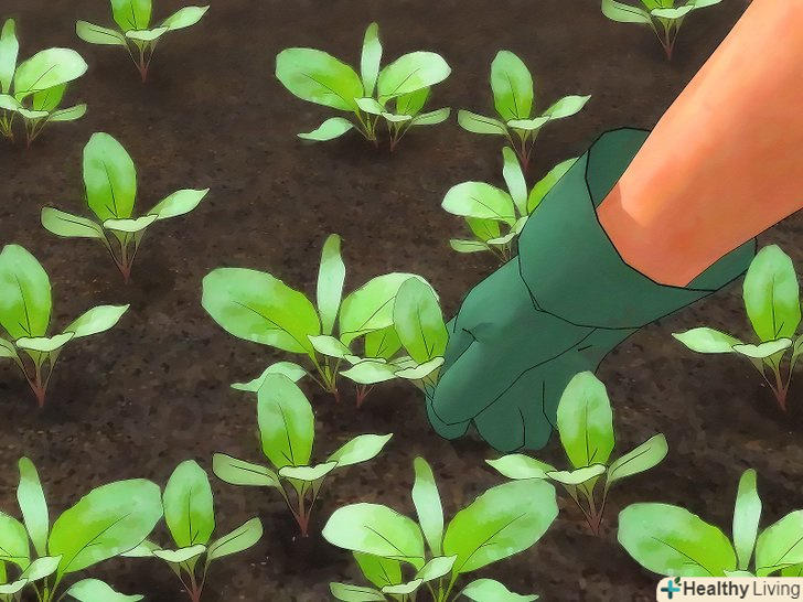 Прорідити сіянці. коли сіянці досягають у висоту 10 см., витягніть найслабші, так щоб у найсильніших було більше можливостей і ресурсів. "Ранні" сорти потрібно прорідити, так щоб вони були на відстані 5-10 см.один від одного, в той час як стандартні або сорти "maincrop" повинні бути на відстані 15 см. один від одного.- Однак, якщо ви хочете виростити Ріпу тільки для зелені, не проріджуйте розсаду.