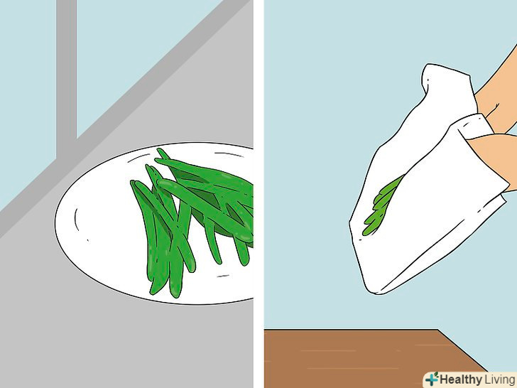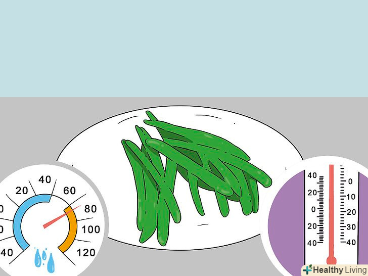 Бланшуйте стручки 2-5 хвилин у воді при температурі 70 °C. розігрійте в каструлі воду до 70 °C. опустіть в неї стручки на 2-5 хвилин, потім обережно дістаньте їх з води. Таким чином ви вб'єте мікробів і приготуєте стручки до сушіння. [20]