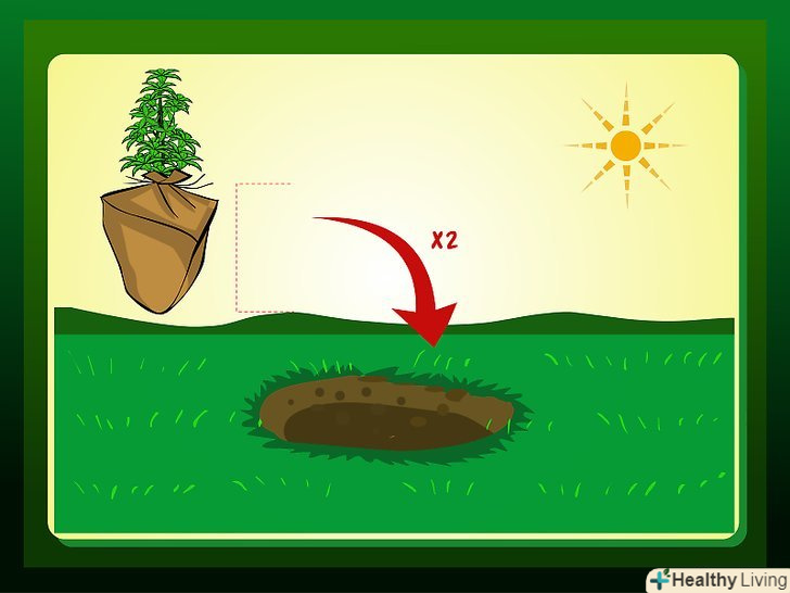 Викопайте для дерева яму в новому місці. отвір повинен бути в 2-3 рази більше розміру кореневої грудки. Глибина отвору повинна бути приблизно на 2.54 см.менше, ніж висота кореневої грудки, так щоб верхня частина мішковини була видна, як тільки дерево поставлять в землю.