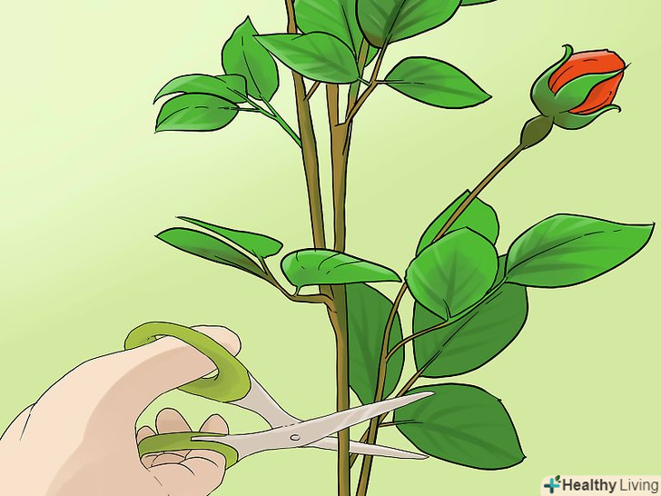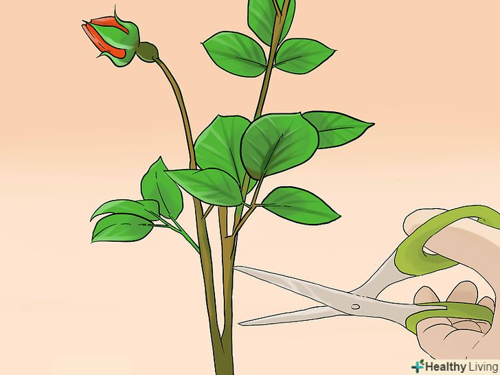 Відріжте частину втечі вашої троянди, довжиною мінімум 6 дюймів (15.2 см), щоб на держаку Залишилося 3 нирки.