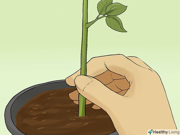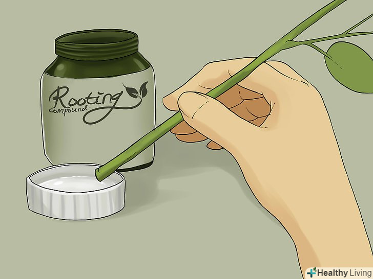 Обробіть підставу живця стимулятором коренеутворення корениться склад (за бажанням).