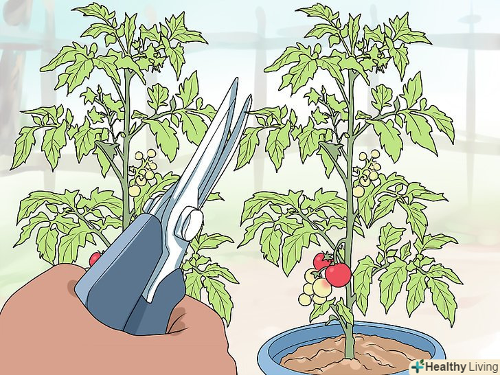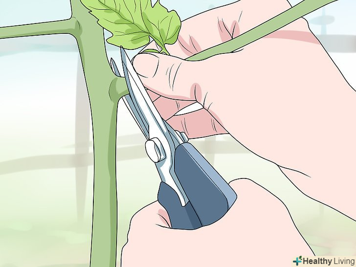 Намагайтеся не перестаратися. залиште на рослині достатньо листя і пагонів для його нормального росту. Обрізка занадто великої частини рослини може уповільнити його зростання і навіть привести до смерті. Відсутність занадто великої кількості листя зробить плоди беззахисними перед сонцем і може зіпсувати помідори. Якщо ви сумніваєтеся, чи потрібно обрізати ту чи іншу частину рослини, краще залишити її як є. [5]- Залишайте хоча б по одному пагону в ході кожної обрізки. Ці стебла можуть в підсумку принести додатковий урожай.