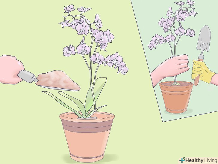 Перевірте міцність посадки міні-орхідеї. підніміть рослину за стебло. Якщо горщик починає зісковзувати, додайте більше субстрату, щоб орхідея росла в більш безпечному положенні.