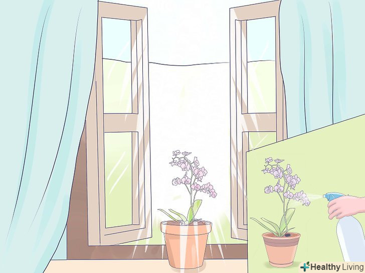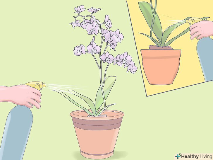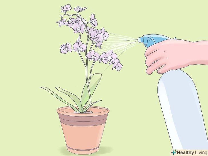 Періодично обприскуйте листя міні-орхідеї. орхідеї люблять вологість, і обприскування рослини кожен день через день буде створювати для них подобу вологого середовища. Якщо це не працює, використовуйте зволожувач повітря.