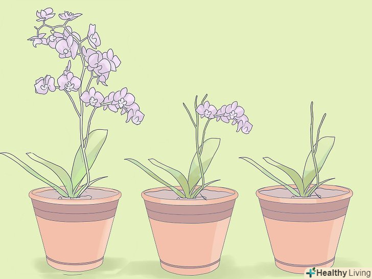 Слідкуйте за листям. ви можете визначити, чи ваша орхідея отримує достатньо світла, за зовнішнім виглядом її листя. Якщо світла занадто мало, листя темно-зелені, цвітіння немає. Якщо світла занадто багато, листя стають жовтими або червоними. На деяких листках можуть навіть з'явитися коричневі плями-сонячні опіки.