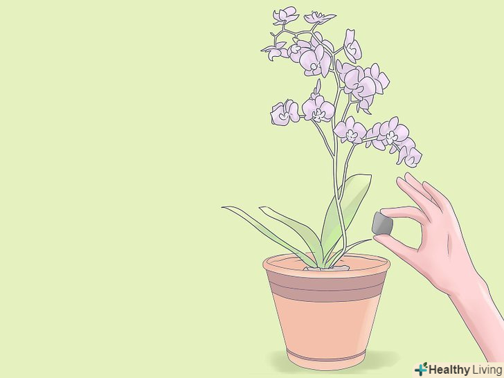 Удобрюйте міні-орхідею раз на місяць. використовуйте збалансоване добриво, розчинивши у воді половину рекомендованої кількості. Якщо ви вважаєте, що це добриво не підходить для вашого рослини, можете спробувати добриво з високим вмістом азоту, особливо якщо ви використовуєте субстрат на основі кори.