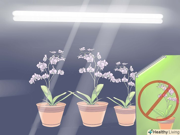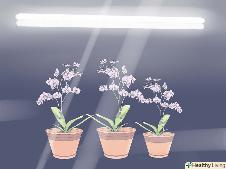 Якщо не можете забезпечити достатню кількість природного світла, додайте штучне освітлення. люмінесцентні лампи або газорозрядні лампи високої інтенсивності-найкраща альтернатива сонячному освітленню. Помістіть лампи на відстані 6-12 дюймів (15.24-30.48 сантиметрів) від верхівки міні-орхідеї, щоб уникнути випадкового надмірного освітлення.
