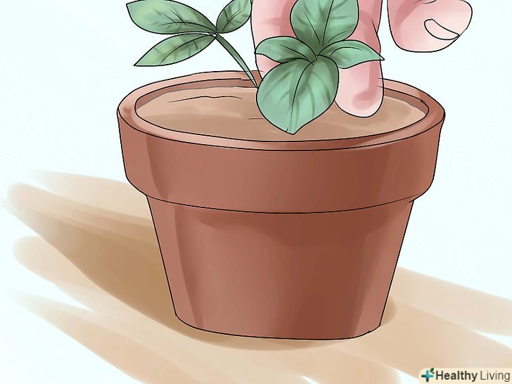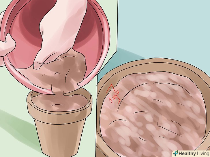 Наповніть горщик грунтовою сумішшю. залиште, приблизно, 2.5 см. порожнього простору між верхньою частиною грунту і ободом горщика.